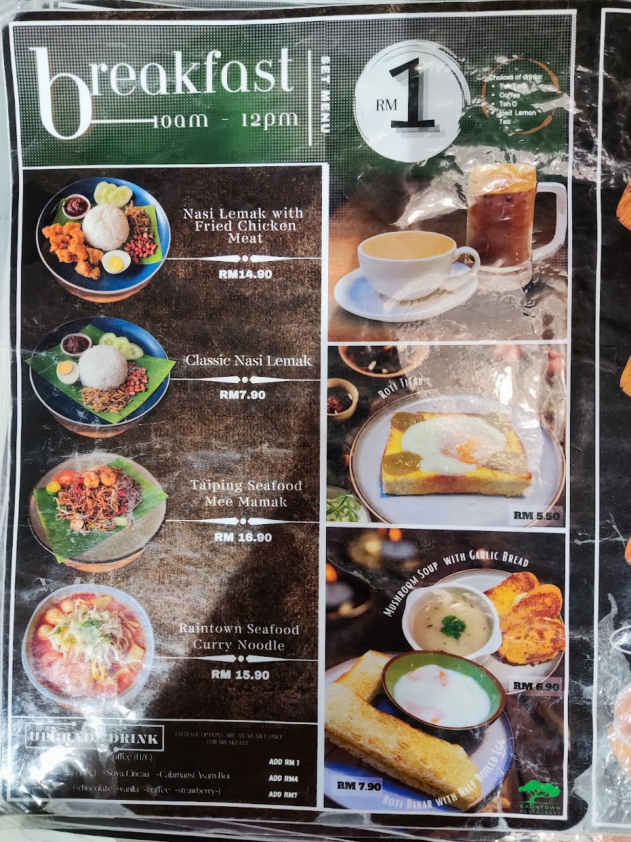 Raintown Restaurant AEON Maluri offers a tantalizing menu that celebrates authentic Malaysian flavors with a modern touch. Start your day with classics like Roti Bakar and French Toast with Honey, comforting yet flavorful breakfast staples. Their signature Nasi Lemak varieties impress with fragrant coconut rice paired thoughtfully with fried chicken, sambal prawns, or sambal sotong, delivering rich, aromatic satisfaction.